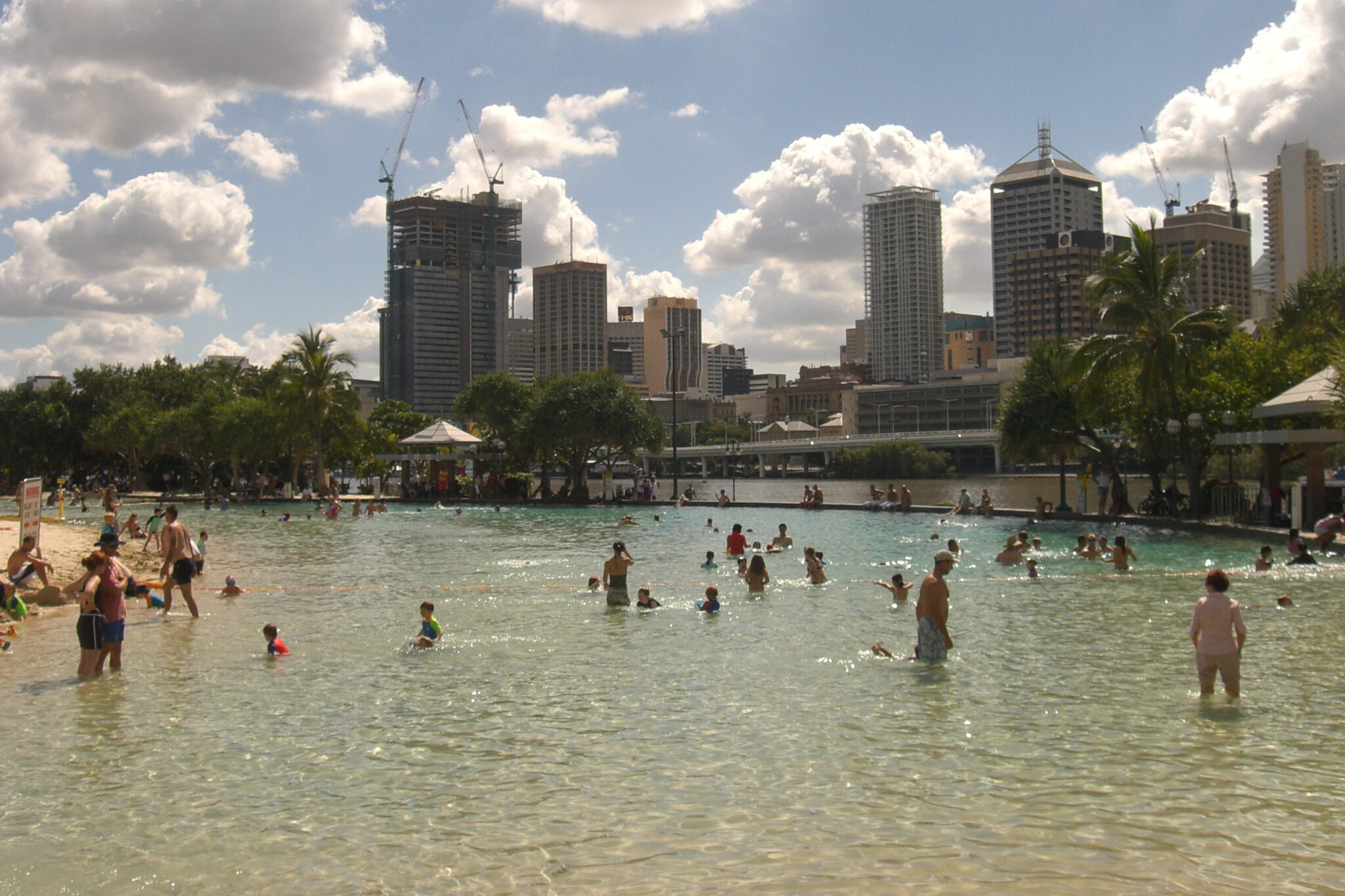 Während meines Stadtbummels durch Brisbane stieß ich plötzlich auf eine riesige künstliche Lagune mitten in der Stadt – für alle zugänglich und ohne Eintritt, fast wie ein gut gehütetes Geheimnis.