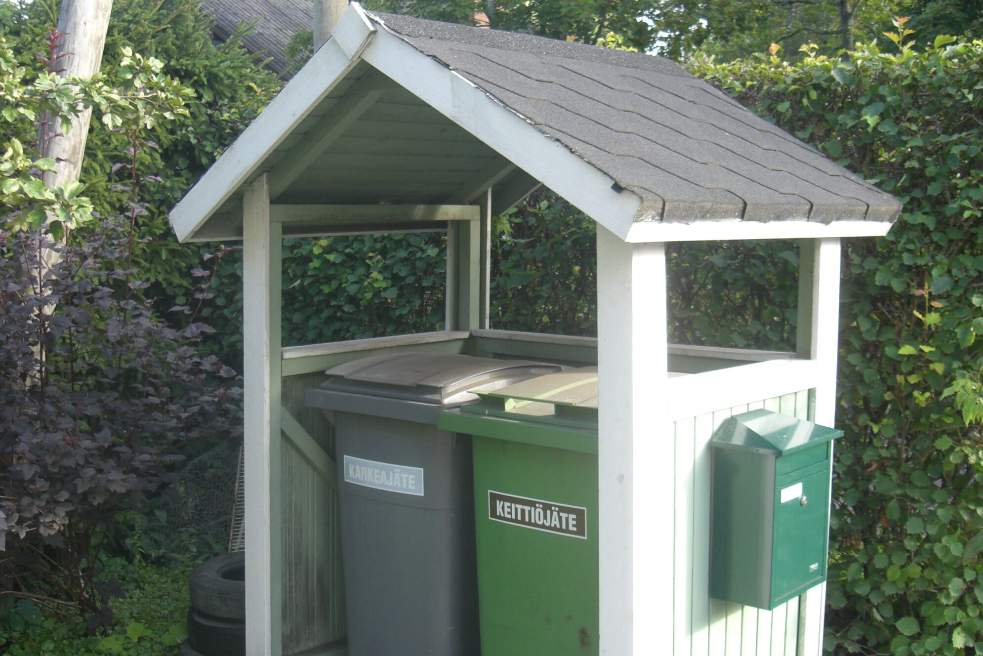 In Finnland ist selbst die Müllentsorgung ein Akt der Fürsorge und Ordnung. Überall sieht man liebevoll gestaltete Mülltonnenhäuschen – oft aus Holz, mit kleinen Dächern, die sie vor Wind und Wetter schützen. Manche sind so charmant, dass man fast vergisst, wofür sie da sind. Sogar kleine Details wie ein Briefkasten sind manchmal zu finden – vielleicht eine praktische Ergänzung oder einfach ein Ausdruck der finnischen Freude an kleinen Besonderheiten.