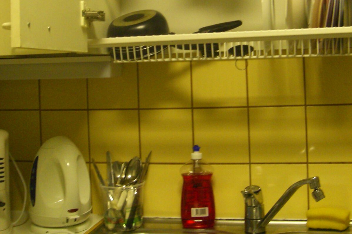 Eine weitere finnische Besonderheit findet man in jeder Küche: das eingebaute Abtropffach direkt über der Spüle. Teller und Tassen werden nach dem Abwasch einfach dort platziert und können in Ruhe trocknen. Ein minimalistischer, aber genialer Ansatz – ganz typisch finnisch!