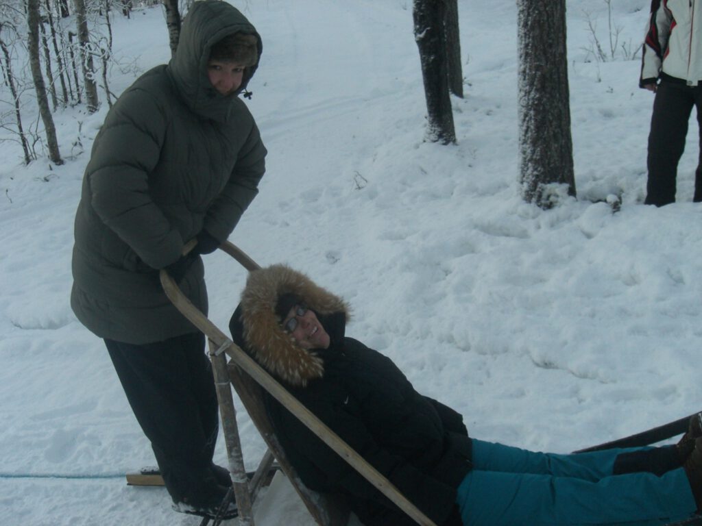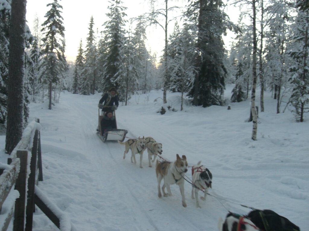 Ich stand auf dem Schlitten, umgeben von glitzerndem Weiß und eisiger Stille. Dann das Startsignal – und plötzlich war alles in Bewegung. Der Schlitten glitt über den Schnee, die Hunde arbeiteten im Einklang, jeder Schritt war kraftvoll und rhythmisch. Trotz der Kälte fühlte ich mich erfüllt von Wärme: Glück, so klar und lebendig wie die Luft Lapplands.
