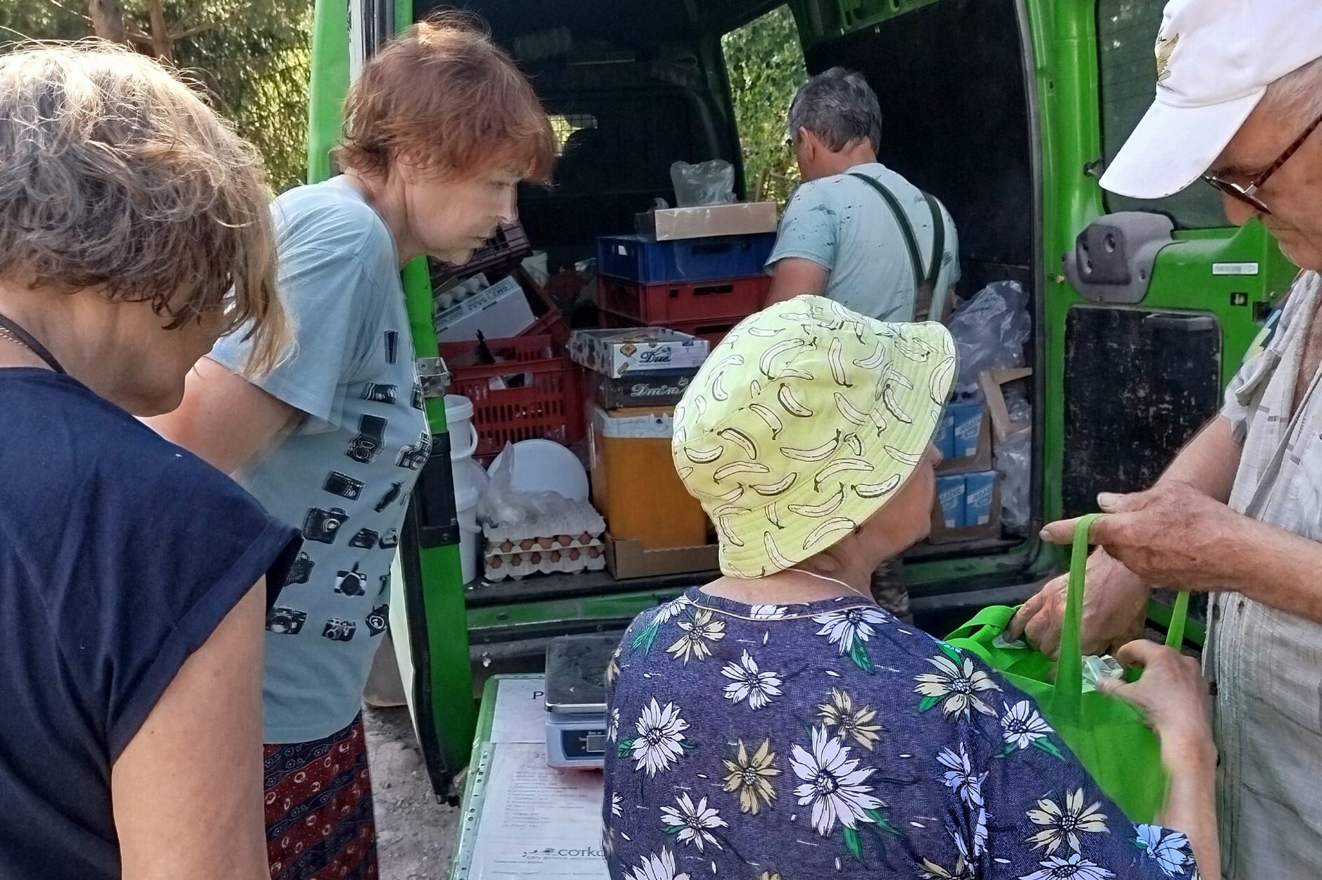 Im Inneren stapeln sich Kisten und Konserven, Fisch in Dosen, Wasser, Mehl, Buchweizen, Bier, Bonbons – alles, was man zum Leben braucht.
