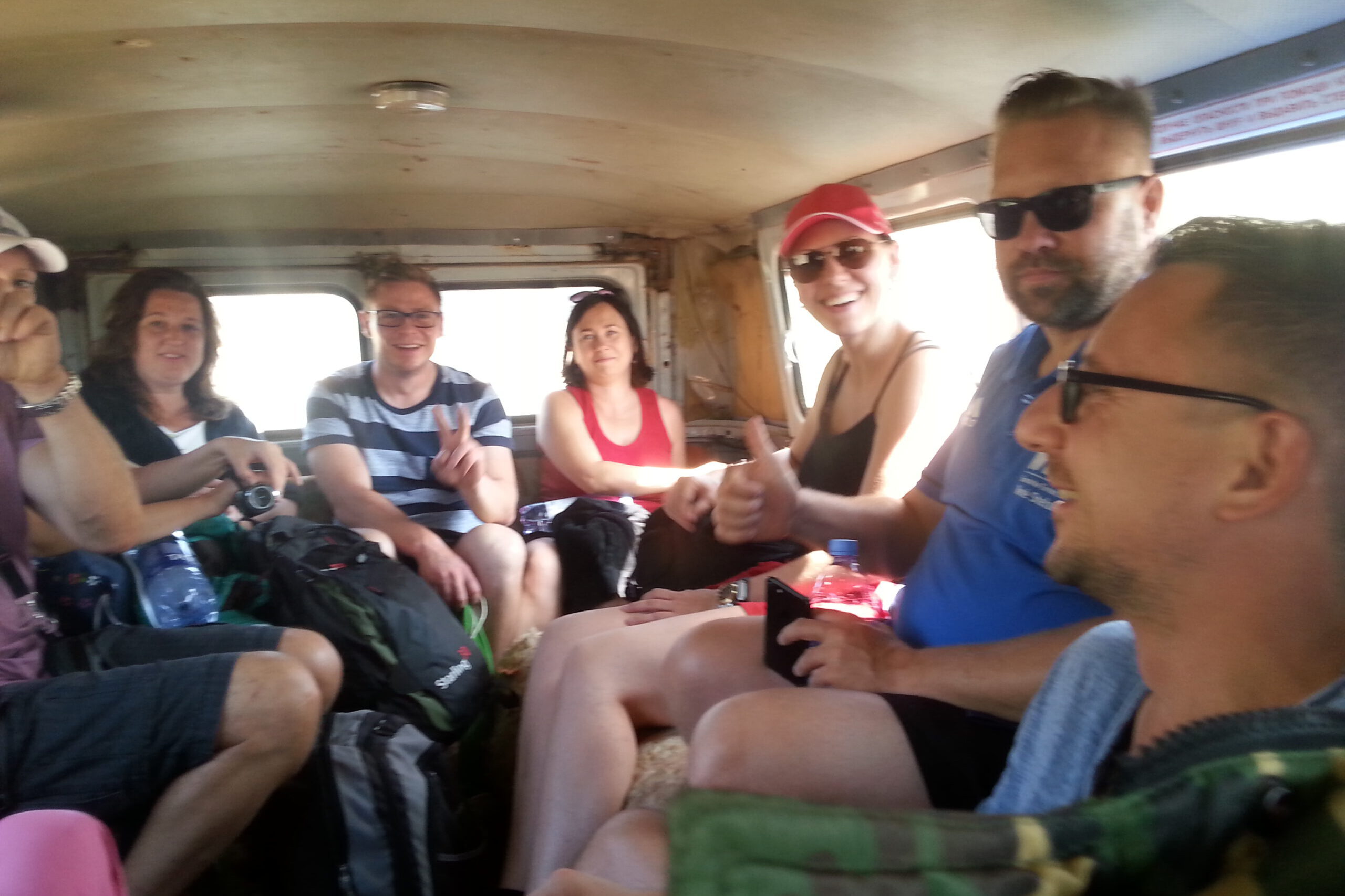 Aber: Die Sitze waren weich gepolstert und die bunten Decken machten es seltsam gemütlich. Und weil wir so eng beieinandersaßen, stützte man sich irgendwie gegenseitig. Ausgerechnet dieser kleine Bus, der von außen aussah, als würde er beinahe auseinanderfallen, erwies sich innen als erstaunlich komfortabel – auf seine ganz eigene Art.